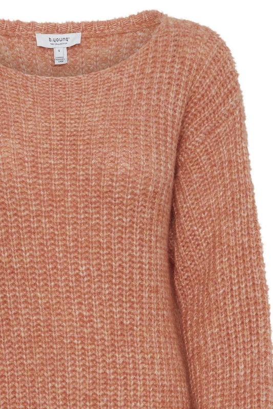 B.YOUNG Maglione girocollo in maglia grossa arancio tegola a maniche lunghe