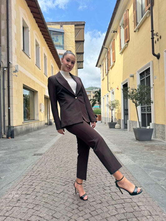 MARYLEY Tailleur giacca slim fit + pantalone coffee