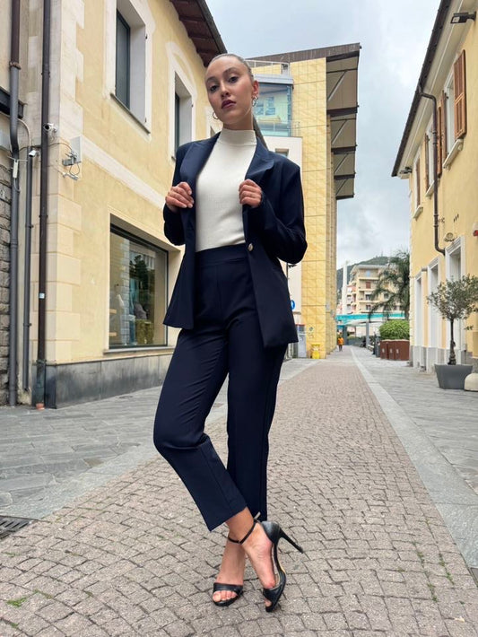 MARYLEY Tailleur giacca monopetto + pantalone sigaretta blu