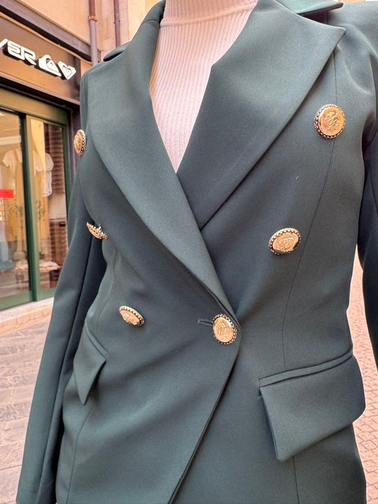 MARYLEY Tailleur giacca doppio petto + pantalone palazzo verde Gucci