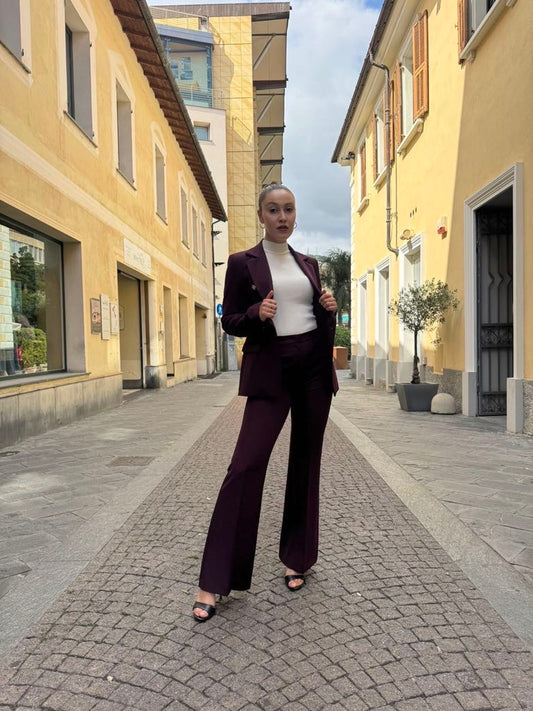 MARYLEY Tailleur giacca doppio petto + pantalone palazzo bordeaux