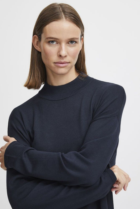 B.YOUNG Abito in maglia con collo alto blu