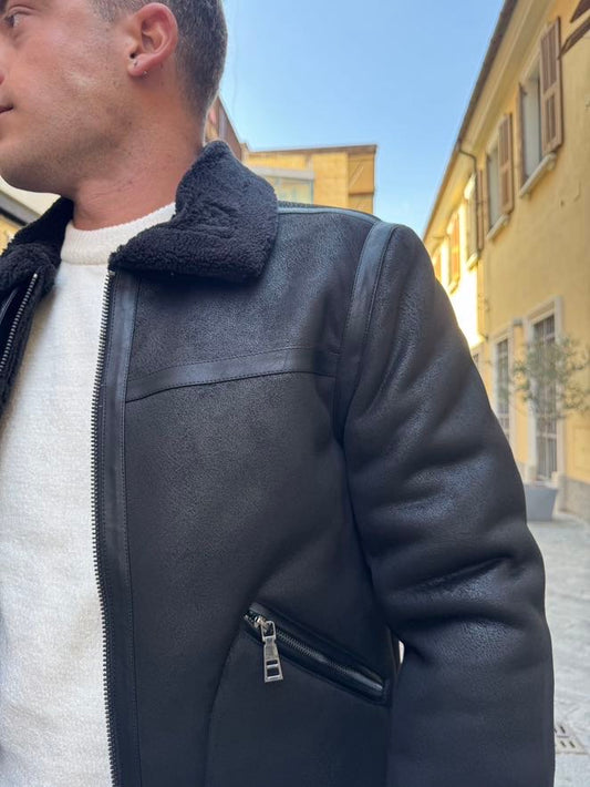 OVER-D Giubbino in ecopelle foderato con colletto e zip verde