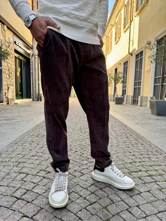 OVER-D Pantalone terepred in velluto moro a coste sottili